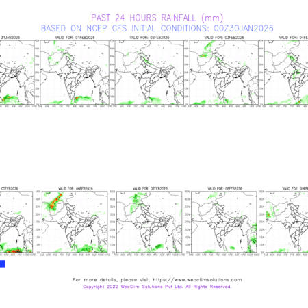 🔺 Minimum: 00-05°C over Punjab till 25th January; 05-10°C Plains of North and Northwest till 26th January. Thereafter, 10-15°C over Plains of North, Northwest, West India, Indo Gangetic Plains and East India; 15-20°C Central India, 20-25°C over Central & South India.