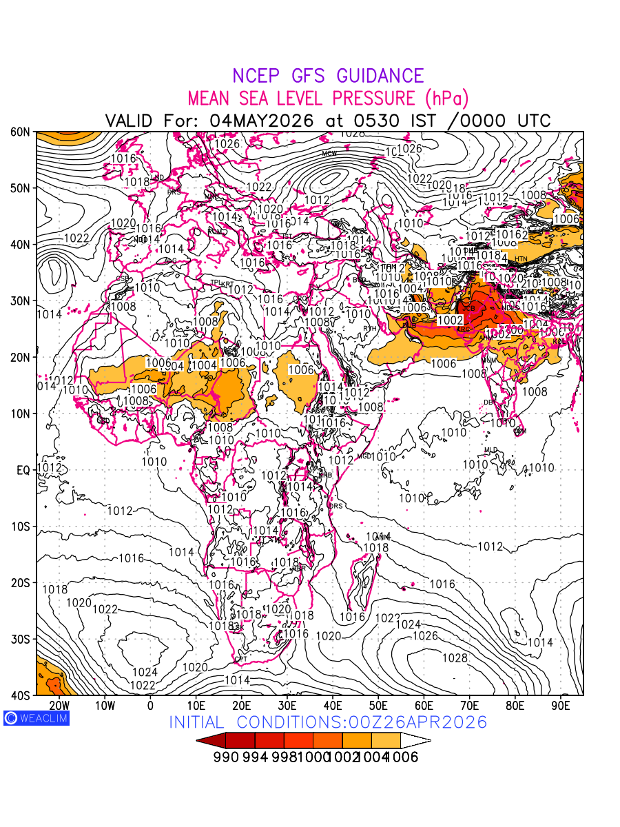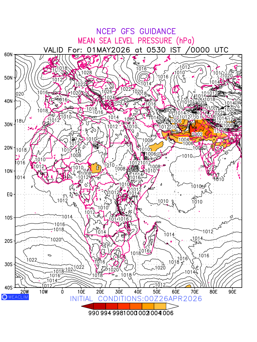 Mean Sea Level Pressure (MSLP) charts at the 24th hour for Africa typically show a color-coded contour map of atmospheric pressure at sea level, with lines of equal pressure (isobars) indicating areas of high and low pressure over a geographic area. Meteorologists use these charts to identify areas of high and low pressure, which can give indications of storms, cold fronts, or warm fronts. The MSLP charts are also useful in identifying areas of convergence and divergence in the atmosphere, which can influence the formation or decay of weather systems.