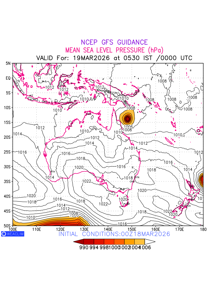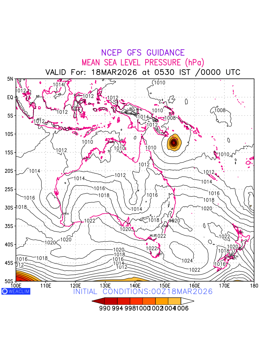 Mean Sea Level Pressure (MSLP) charts at the 24th hour for Australia, New Zealand and Tasmania typically show a color-coded contour map of atmospheric pressure at sea level, with lines of equal pressure (isobars) indicating areas of high and low pressure over a geographic area. Meteorologists use these charts to identify areas of high and low pressure, which can give indications of storms, cold fronts, or warm fronts. The MSLP charts are also useful in identifying areas of convergence and divergence in the atmosphere, which can influence the formation or decay of weather systems.