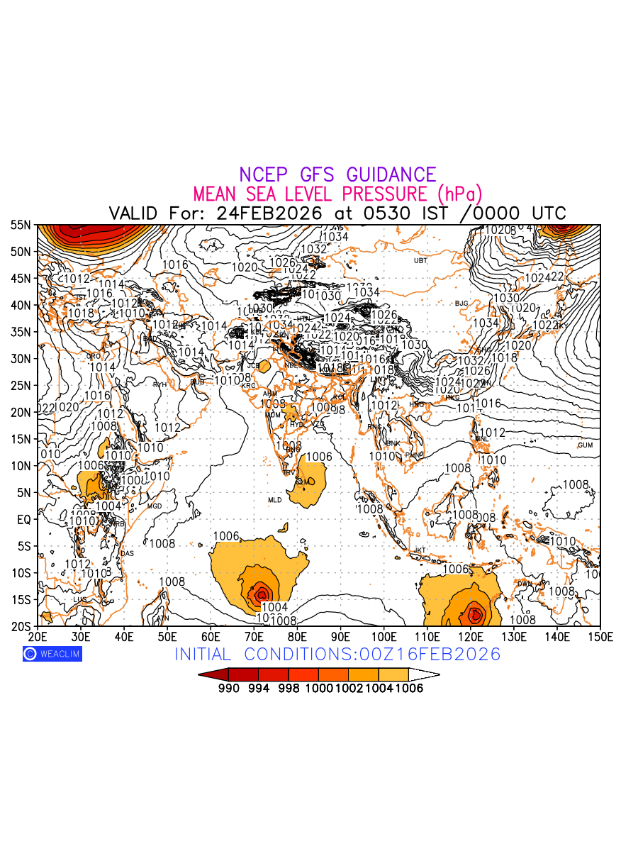 Mean Sea Level Pressure (MSLP) charts at the 24th hour for Eurasia typically show a color-coded contour map of atmospheric pressure at sea level, with lines of equal pressure (isobars) indicating areas of high and low pressure over a geographic area. Meteorologists use these charts to identify areas of high and low pressure, which can give indications of storms, cold fronts, or warm fronts. The MSLP charts are also useful in identifying areas of convergence and divergence in the atmosphere, which can influence the formation or decay of weather systems.