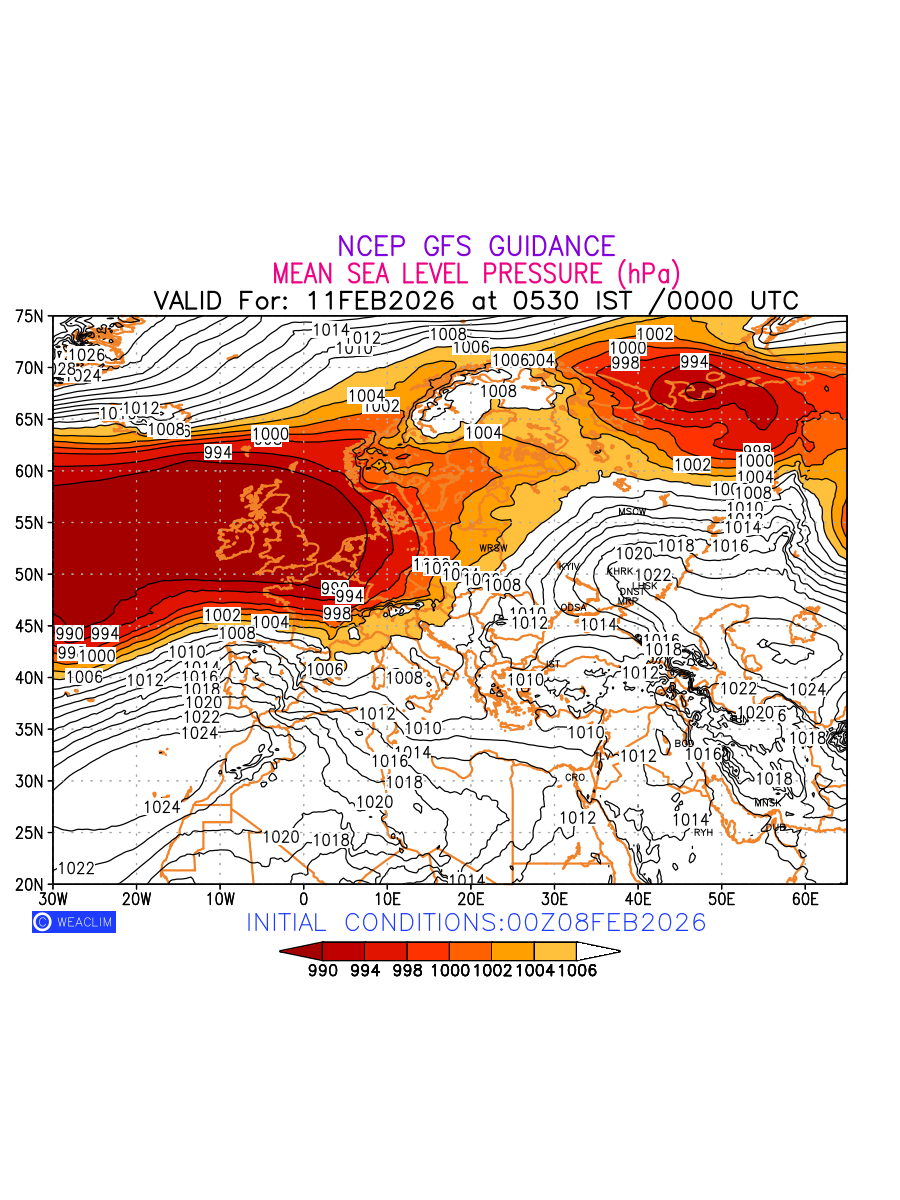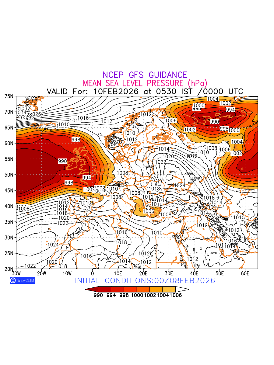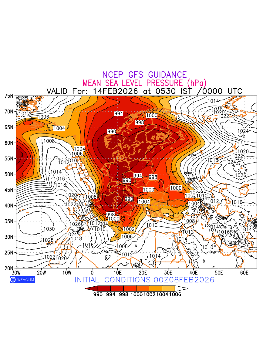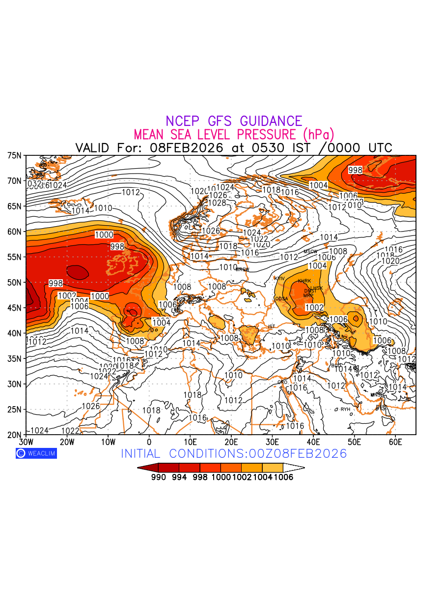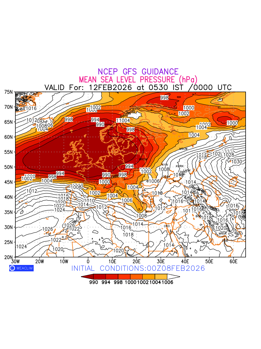 Mean Sea Level Pressure (MSLP) charts at the 24th hour for Europe typically show a color-coded contour map of atmospheric pressure at sea level, with lines of equal pressure (isobars) indicating areas of high and low pressure over a geographic area. Meteorologists use these charts to identify areas of high and low pressure, which can give indications of storms, cold fronts, or warm fronts. The MSLP charts are also useful in identifying areas of convergence and divergence in the atmosphere, which can influence the formation or decay of weather systems.