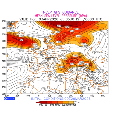 Mean Sea Level Pressure (MSLP) charts at the 24th hour for Europe typically show a color-coded contour map of atmospheric pressure at sea level, with lines of equal pressure (isobars) indicating areas of high and low pressure over a geographic area. Meteorologists use these charts to identify areas of high and low pressure, which can give indications of storms, cold fronts, or warm fronts. The MSLP charts are also useful in identifying areas of convergence and divergence in the atmosphere, which can influence the formation or decay of weather systems.