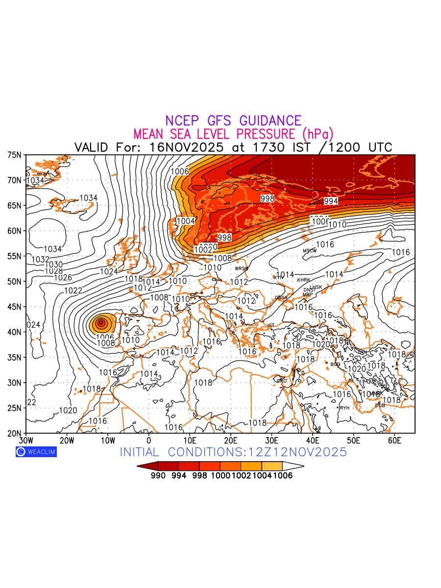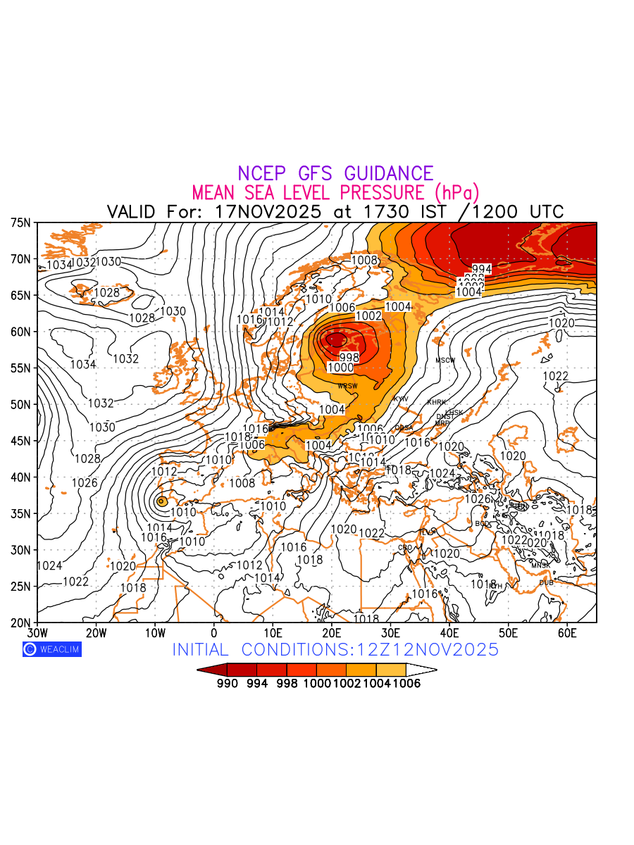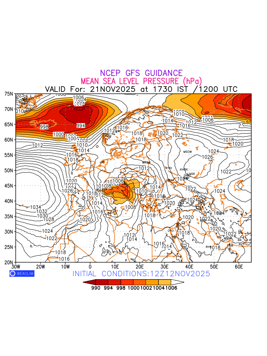 Mean Sea Level Pressure (MSLP) charts at the 24th hour for Europe typically show a color-coded contour map of atmospheric pressure at sea level, with lines of equal pressure (isobars) indicating areas of high and low pressure over a geographic area. Meteorologists use these charts to identify areas of high and low pressure, which can give indications of storms, cold fronts, or warm fronts. The MSLP charts are also useful in identifying areas of convergence and divergence in the atmosphere, which can influence the formation or decay of weather systems.