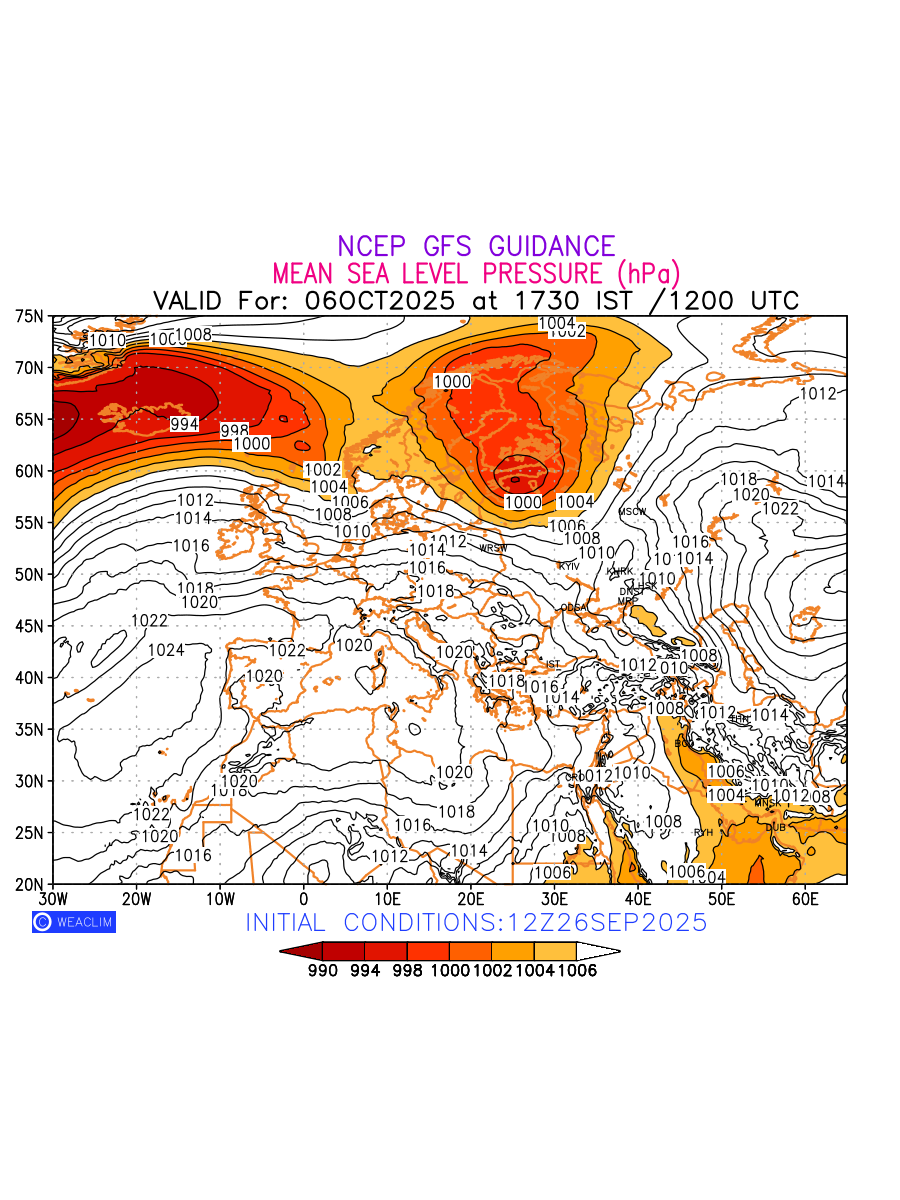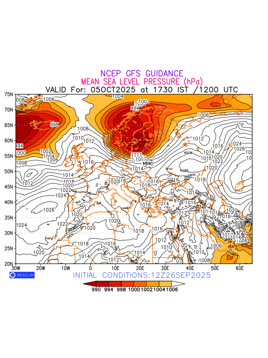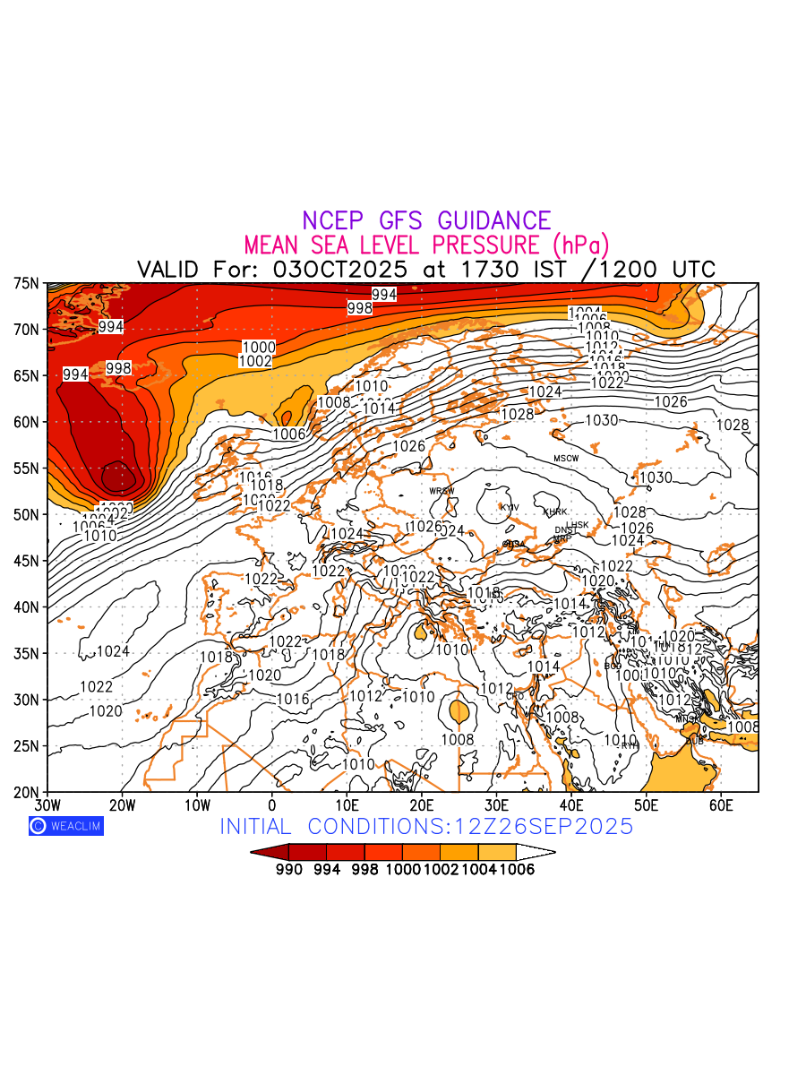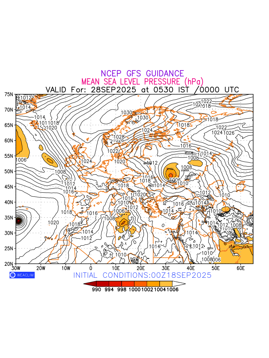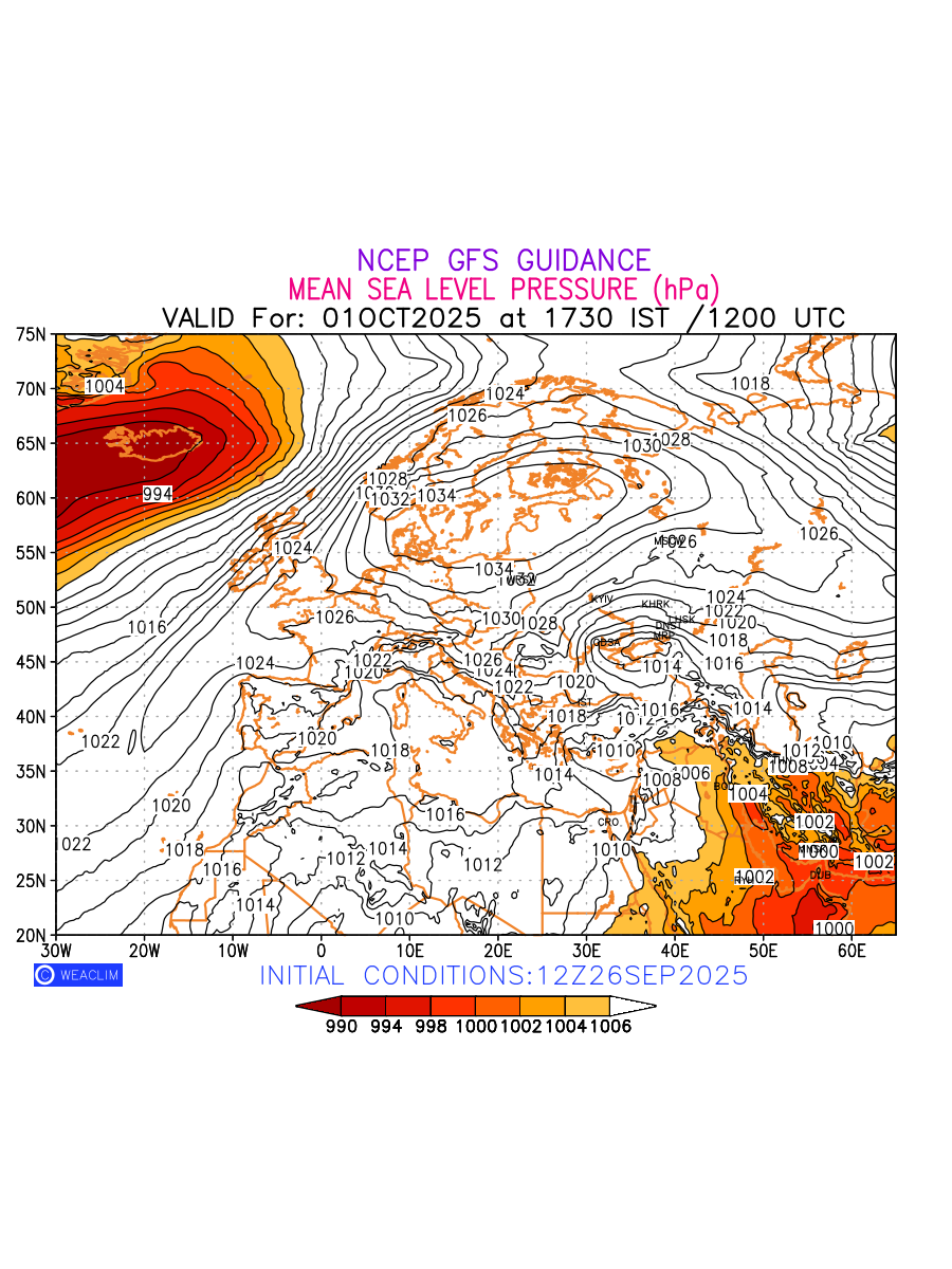Mean Sea Level Pressure (MSLP) charts at the 24th hour for Europe typically show a color-coded contour map of atmospheric pressure at sea level, with lines of equal pressure (isobars) indicating areas of high and low pressure over a geographic area. Meteorologists use these charts to identify areas of high and low pressure, which can give indications of storms, cold fronts, or warm fronts. The MSLP charts are also useful in identifying areas of convergence and divergence in the atmosphere, which can influence the formation or decay of weather systems.