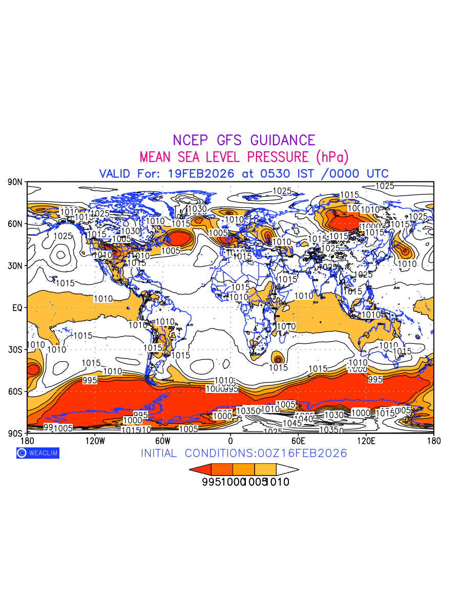 Mean Sea Level Pressure (MSLP) charts at the 24th hour for entire World typically show a color-coded contour map of atmospheric pressure at sea level, with lines of equal pressure (isobars) indicating areas of high and low pressure over a geographic area. Meteorologists use these charts to identify areas of high and low pressure, which can give indications of storms, cold fronts, or warm fronts. The MSLP charts are also useful in identifying areas of convergence and divergence in the atmosphere, which can influence the formation or decay of weather systems.